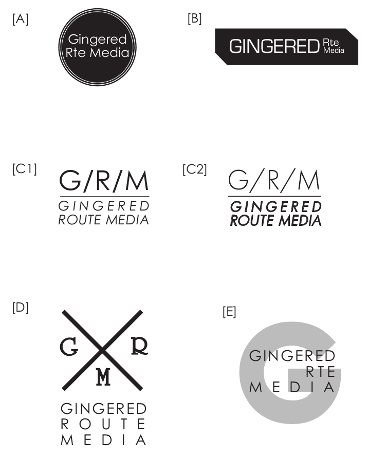 Concept logo ideas for Gingered Route Media.
