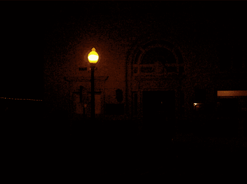 Night time photograph of downtown Waxahachie, Texas.